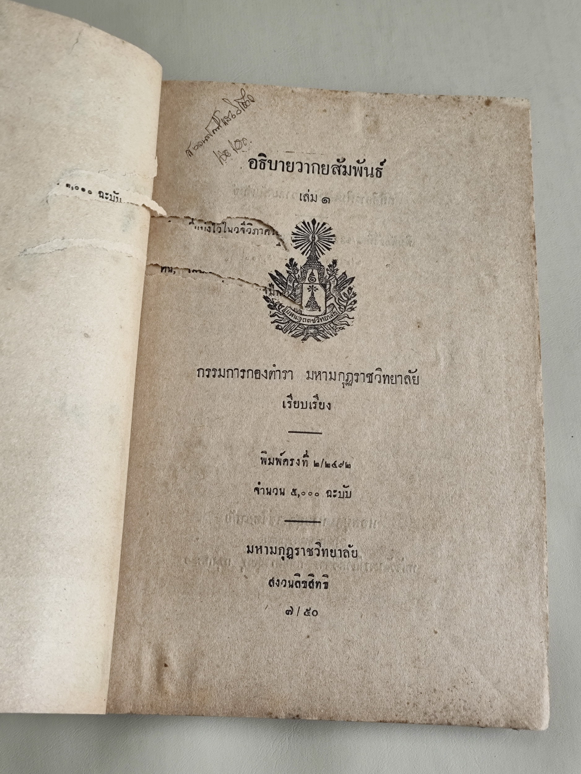 จัดพิมพ์จำหน่ายโดย มหาธาตุวิทยาลัย