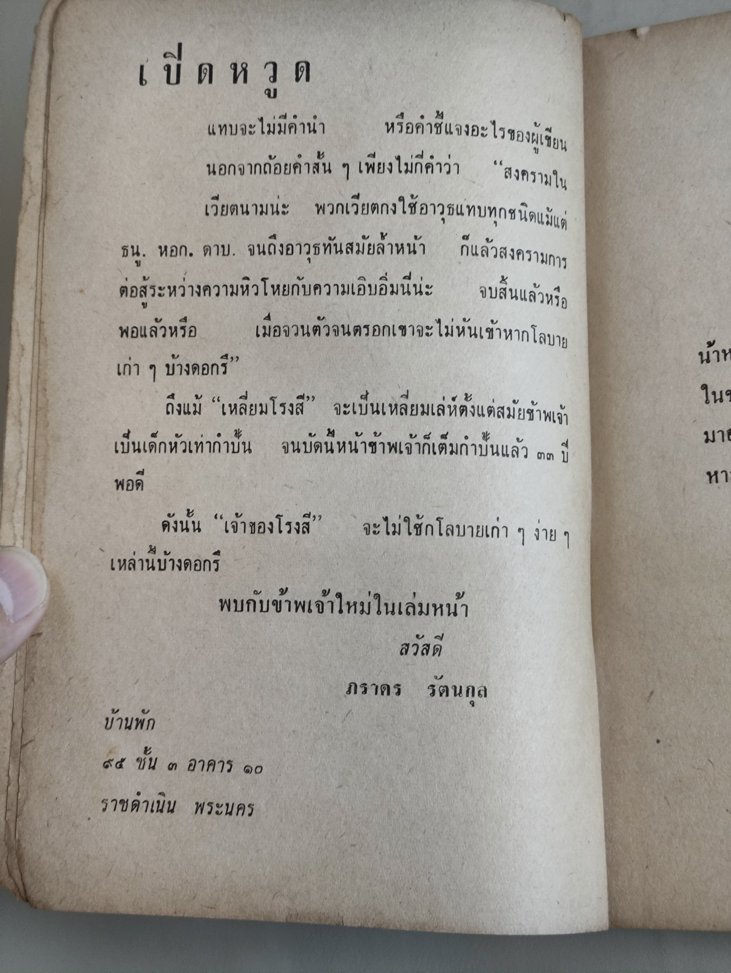 สภาพหนังสือ:ปกมอมแมม มีรอยถลอก ยับ ตามภาพ สันปกถลอกลอกที่มุมบน-ล่าง , ใบรองปก-หลังปก เป็นจ้ำเหลืองประปราย , กระดาษเหลืองตามขอบ และ เป็นจ้ำเหลืองประปราย มีรอยเปื้อนคราบน้ำตามขอบบางหน้า มีรอยกร่อนตามขอบและมุมเล็กน้อยบางหน้า , สันหนังสือเหลือง และเป็นจุดเหลืองประปราย
