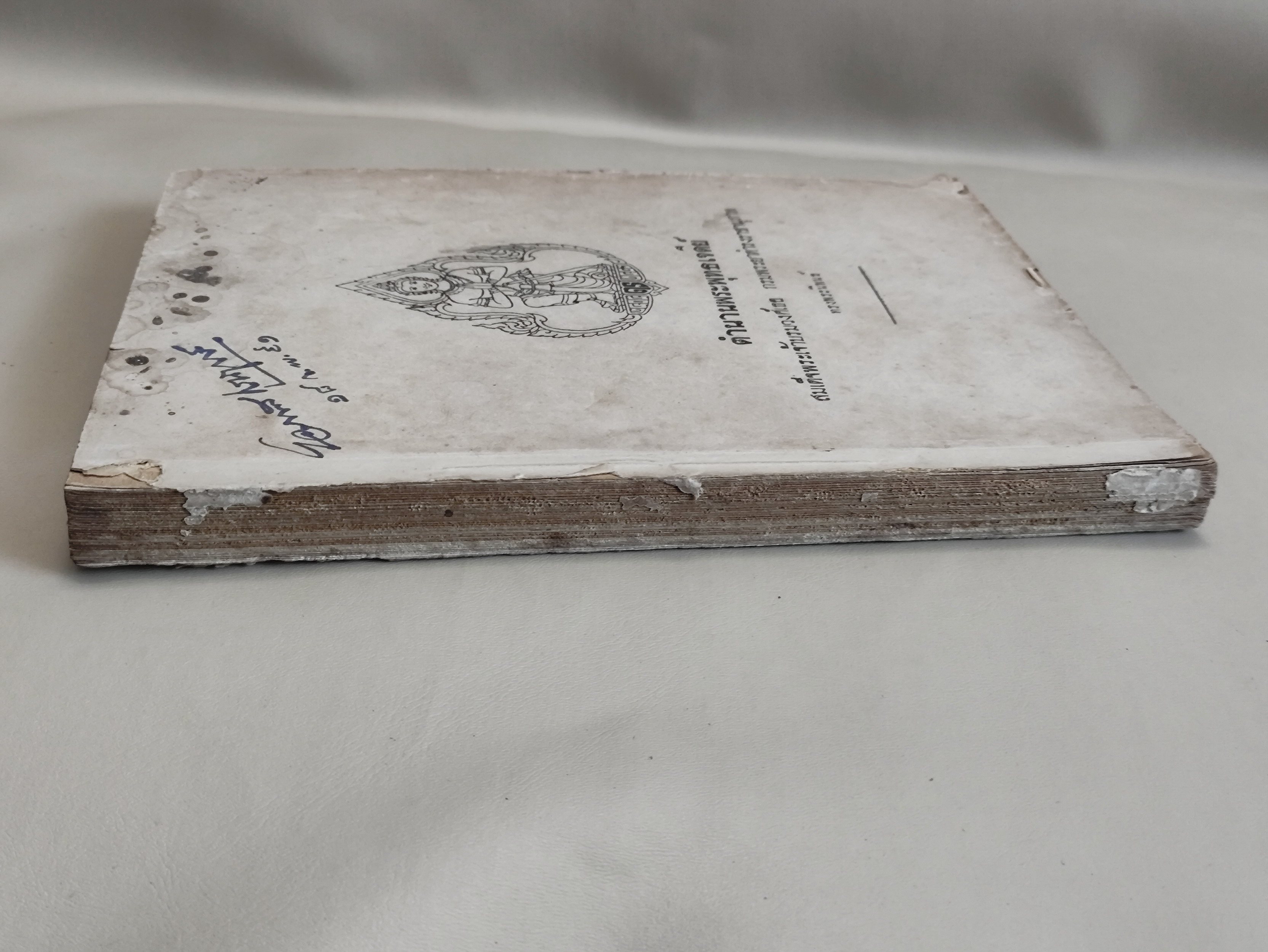 สภาพหนังสือ:ปก มีลายเซ็นต์เจ้าของเดิม มีรอยเปื้อน รอยบิ่นแหว่งตามขอบและมุมตามภาพ สันปกถลอกลอกออกหมด , ใบรองปกหน้ามีลายเซ็นต์เจ้าของเดิม ใบรองปกและหลังปกเป็นจุดเหลืองกระจายทั่วแผ่น , กระดาษเหลืองตามขอบ และ เป็นจ้ำเหลืองประปราย มีรอยเปื้อนเล็กน้อยบางหน้า , สันหนังสือเหลือง และเป็นจุดเหลืองจุดน้ำตาลกระจาย