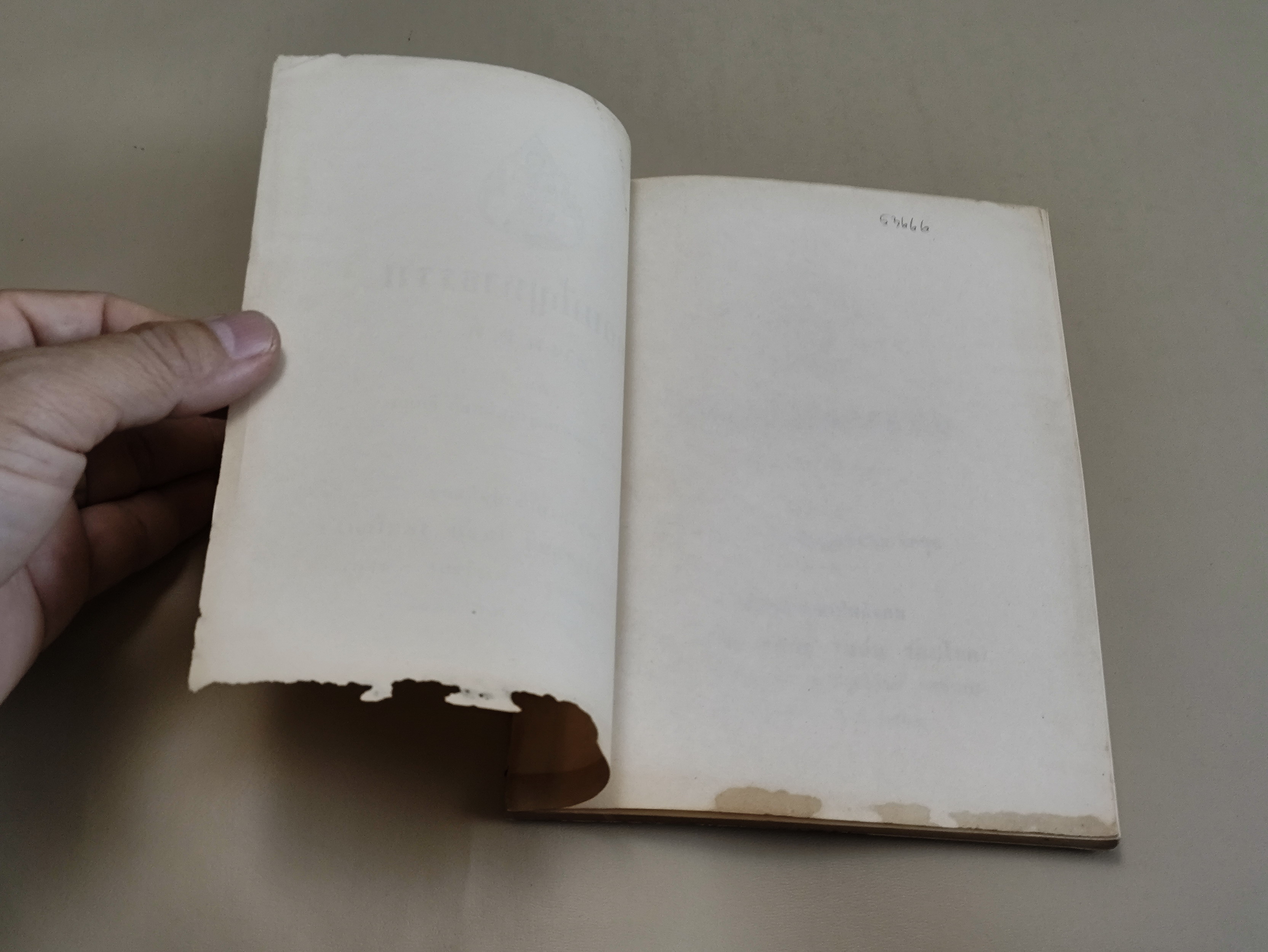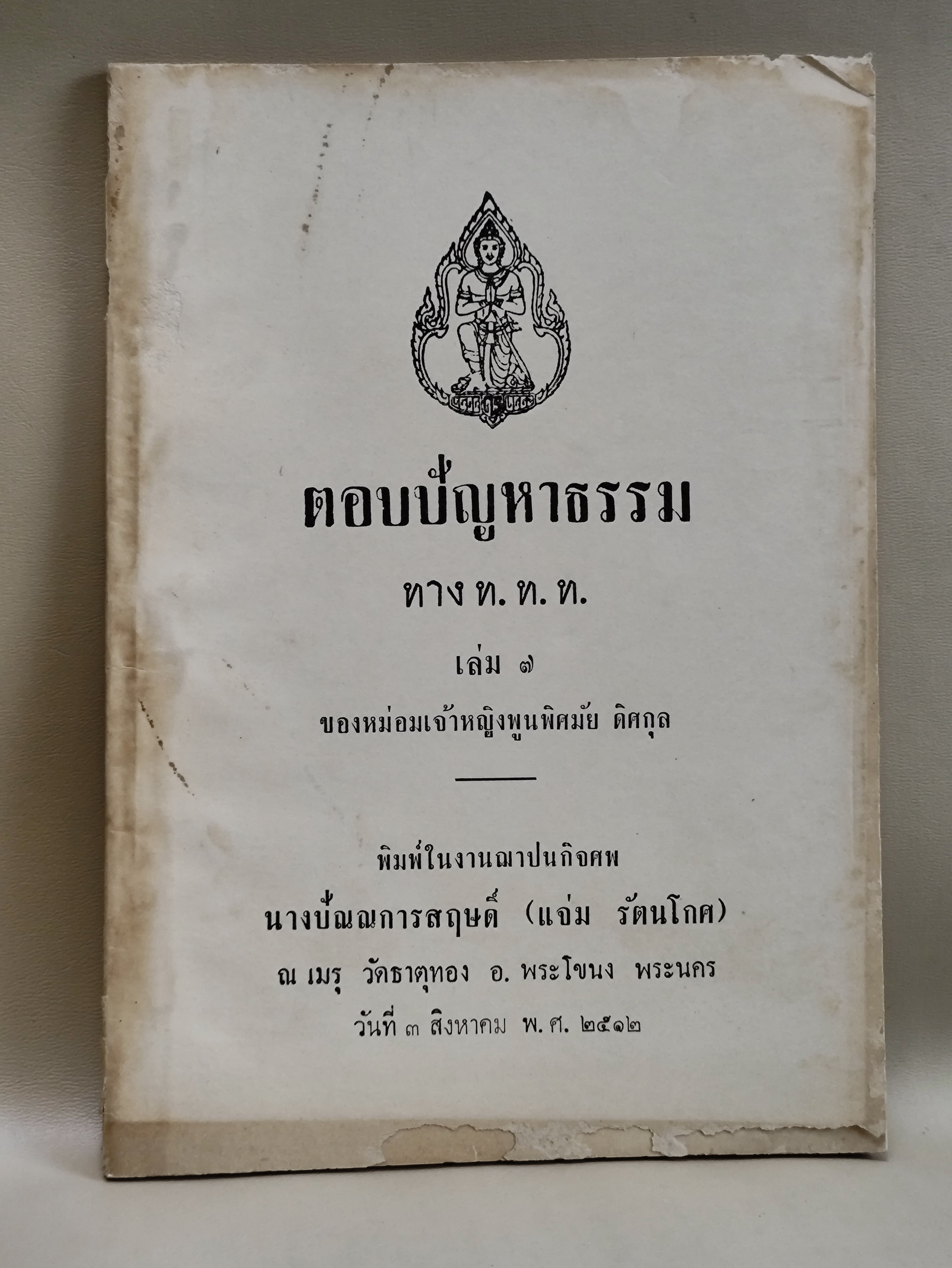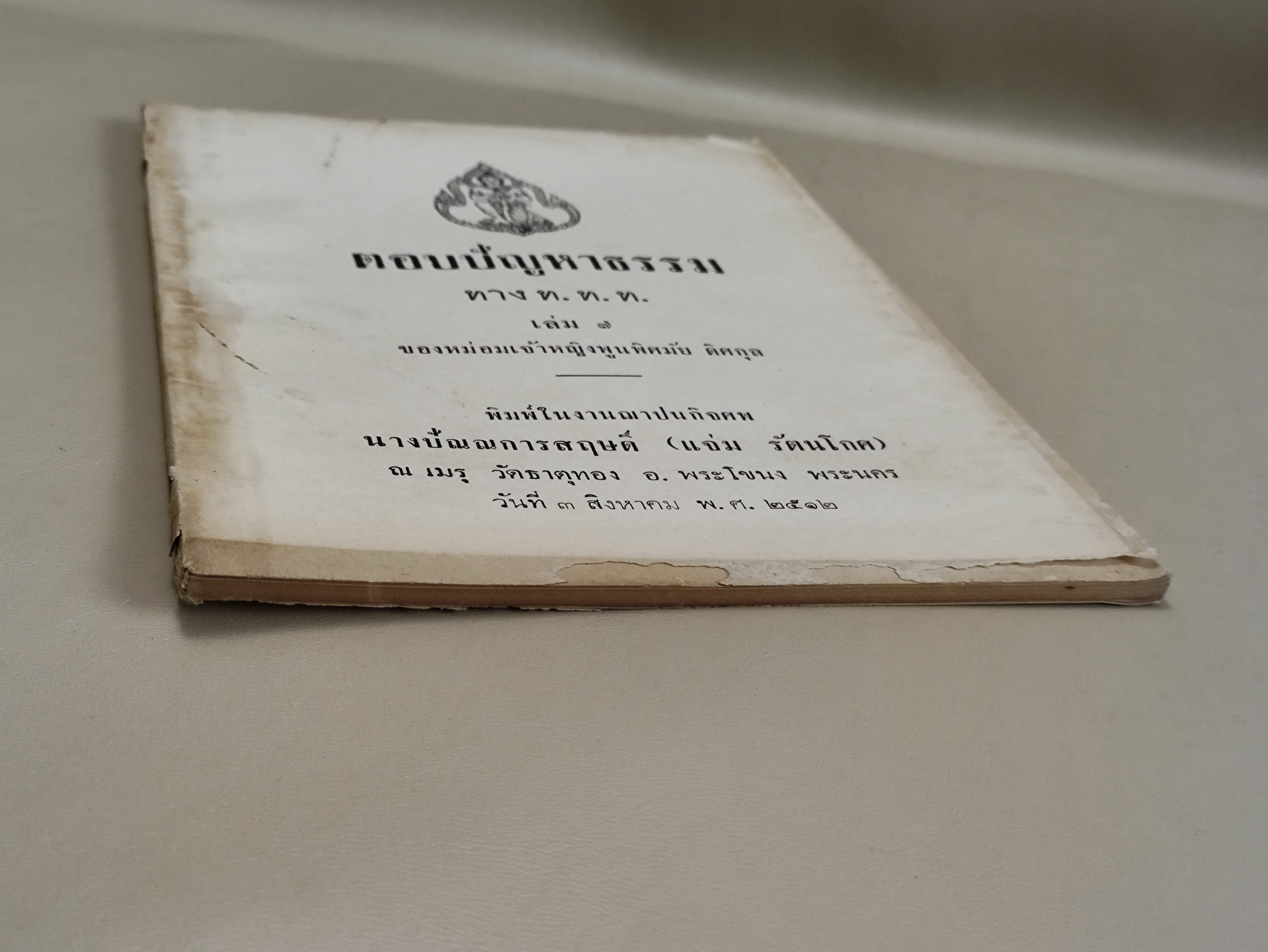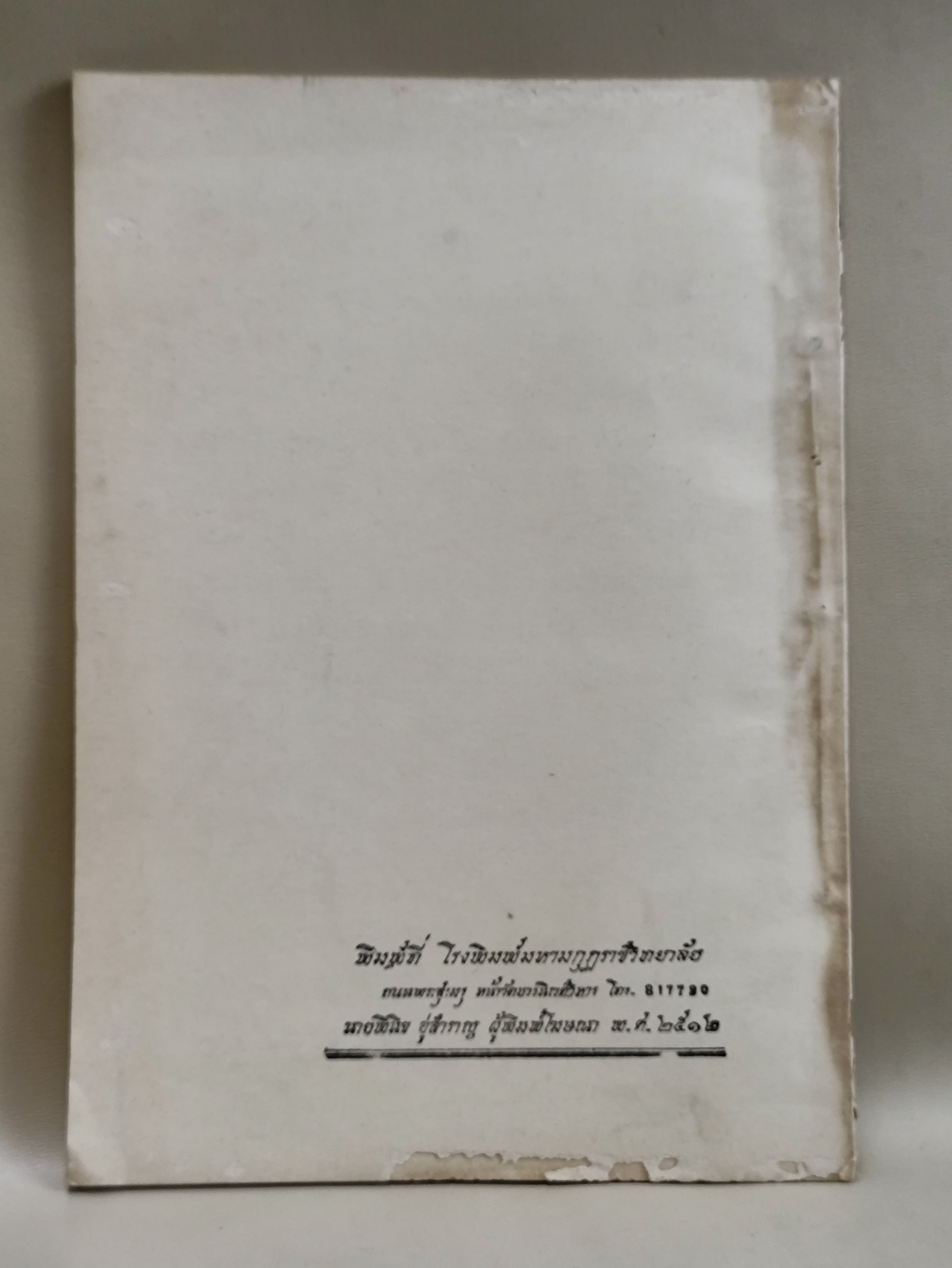 สภาพหนังสือ:ปกมอมแมม มีรอยถลอก ยับ มีคราบเหลือง ขอบล่างมีรอยแหว่งเล็กน้อยตามภาพ , ใบรองปก-หลังปก เป็นจ้ำเหลืองประปราย , กระดาษเหลืองตามขอบ และ เป็นจ้ำเหลืองประปราย , สันหนังสือเหลือง และเป็นจุดเหลืองประปราย