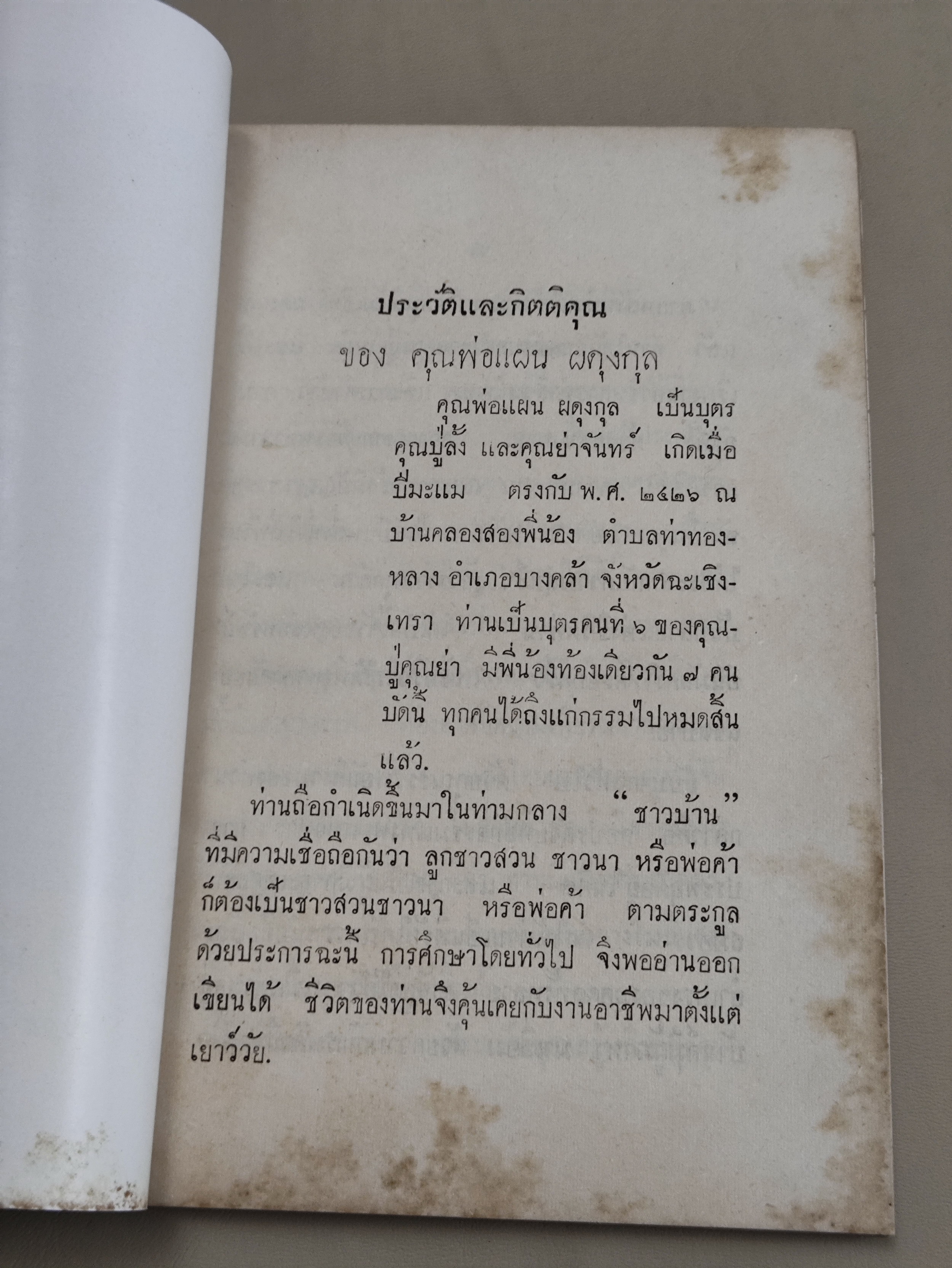 พิมพ์เป็นที่ระลึกในงานฌาปนกิจศพ นายแผน ผดุงกุล (พ.ศ.2426-พ.ย. พ.ศ.2504) เกิดที่ บ้านคลองสองพี่น้อง อ.บางคล้า จ.ฉะเชิงเทรา บุตร นายลั้ง-นางจันทร์ สมรสกับ นางเฮียง และ นางแย้ม ผดุงกุล ณ ฌาปนสถานกองทัพบก วัดโสมนัสวิหาร วันที่ 28 พ.ค. 2507