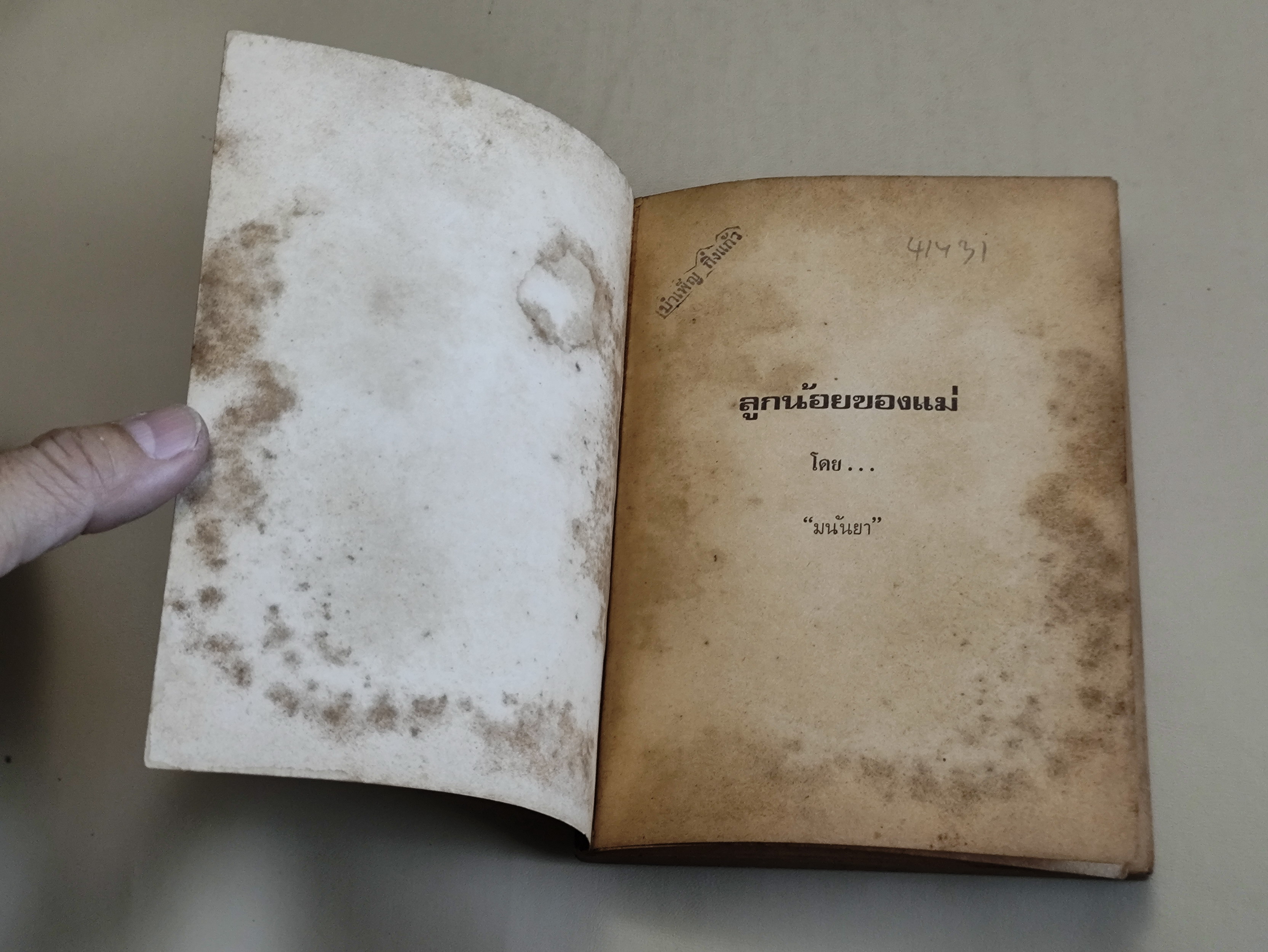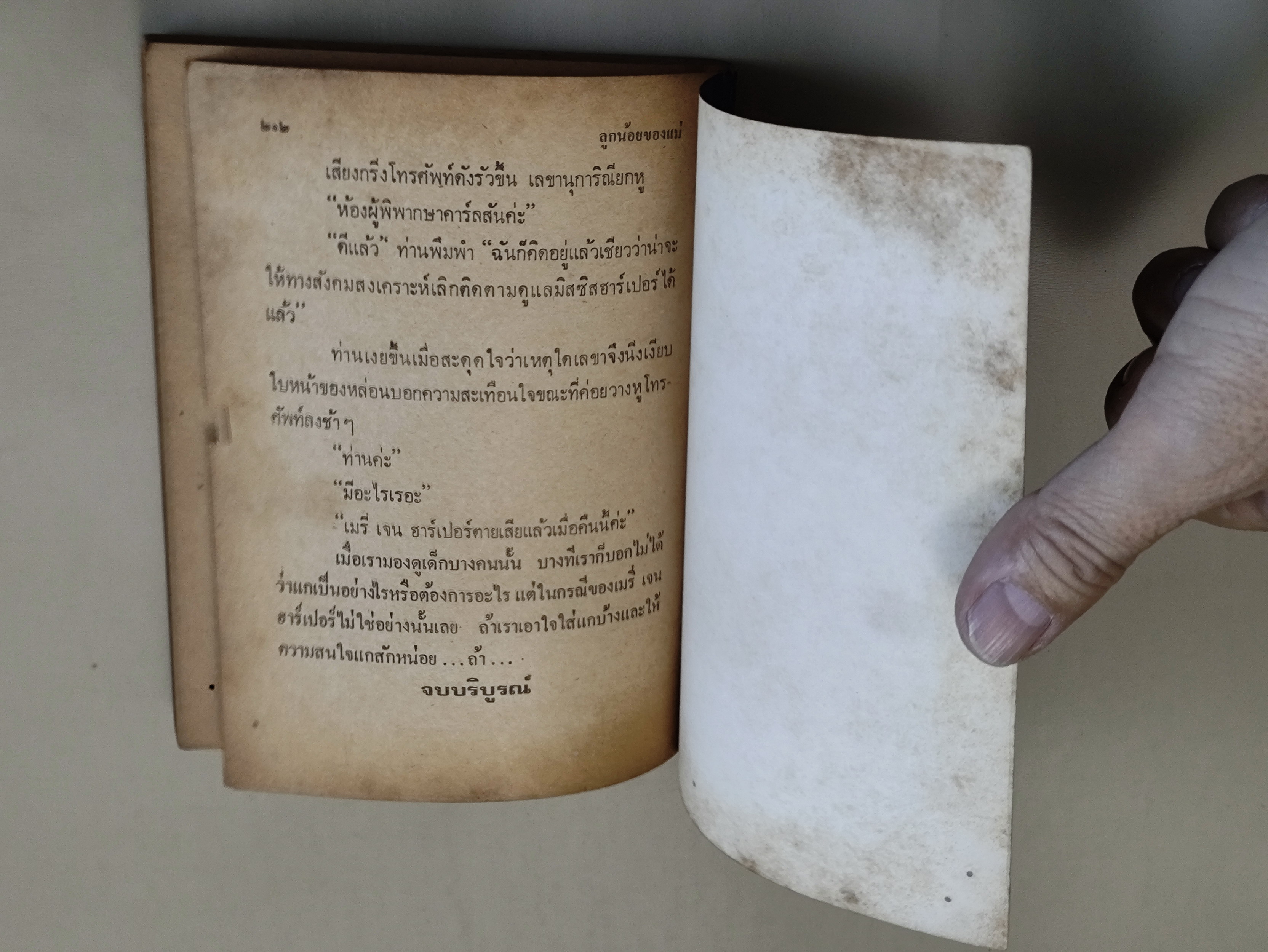 สภาพหนังสือ:ปกมอมแมม มีรอยถลอก ยับ เล็กน้อยตามภาพ , ใบรองปก-หลังปก เป็นจ้ำเหลือง-คราบเหลืองกระจาย และมีตรายางชื่อเจ้าของเดิมที่ใบรองปก , กระดาษเหลืองตามขอบ และ เป็นจ้ำเหลืองประปราย มีรอยหนอนเจาะที่ขอบล่างเล็กน้อย , สันหนังสือเหลือง และเป็นจุดเหลืองประปราย