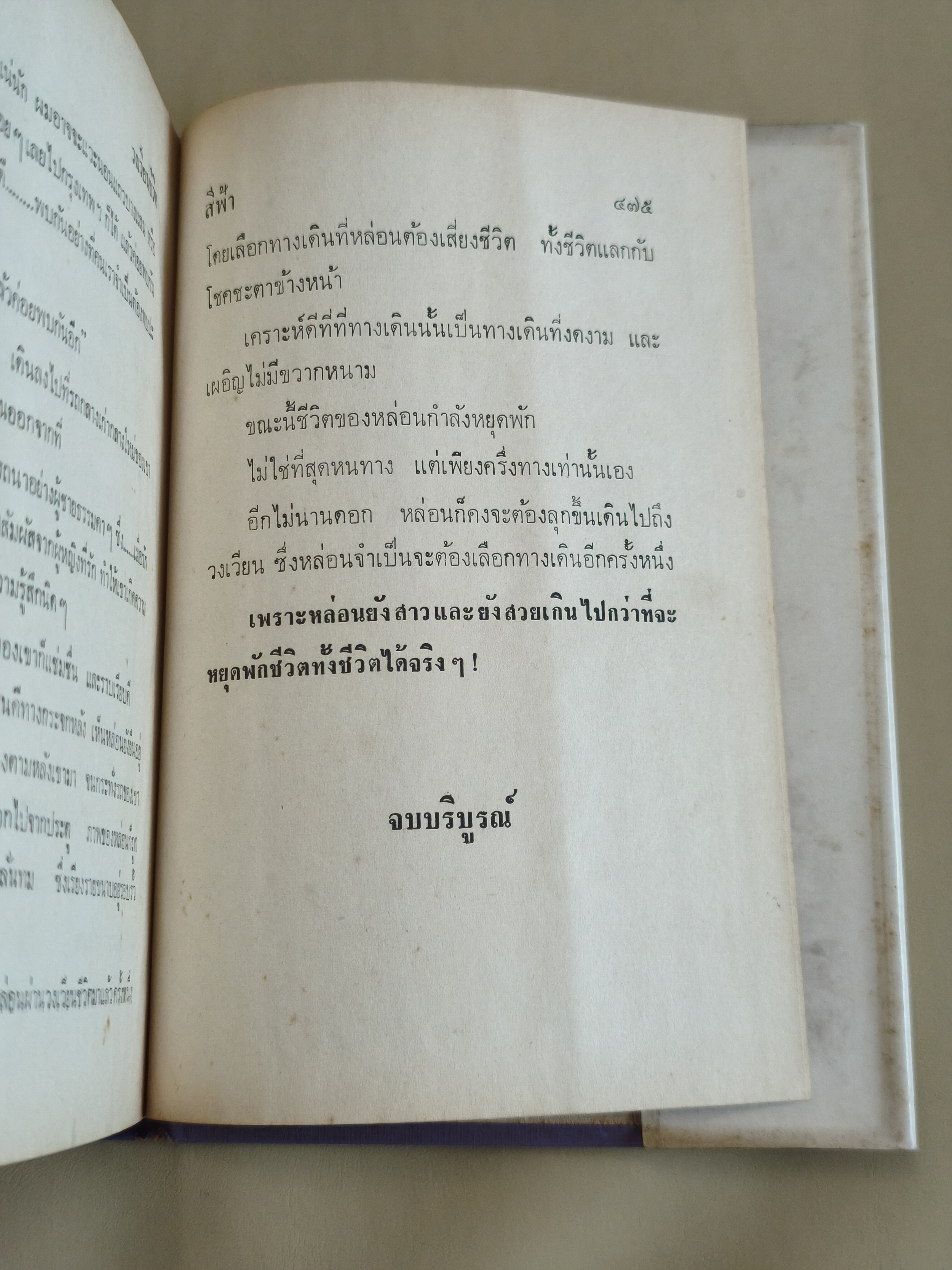 อีกไม่นานดอก หล่อนก็คงจะต้องลุกขึ้นเดินไปถึงวงเวียน ซึ่งหล่อนจำเป็นจะต้องเลือกทางเดินอีกครั้งหนึ่ง เพราะหล่อนยังสาวและยังสวยเกินไปกว่าที่จะหยุดพักชีวิตทั้งชีวิตได้จริงๆ