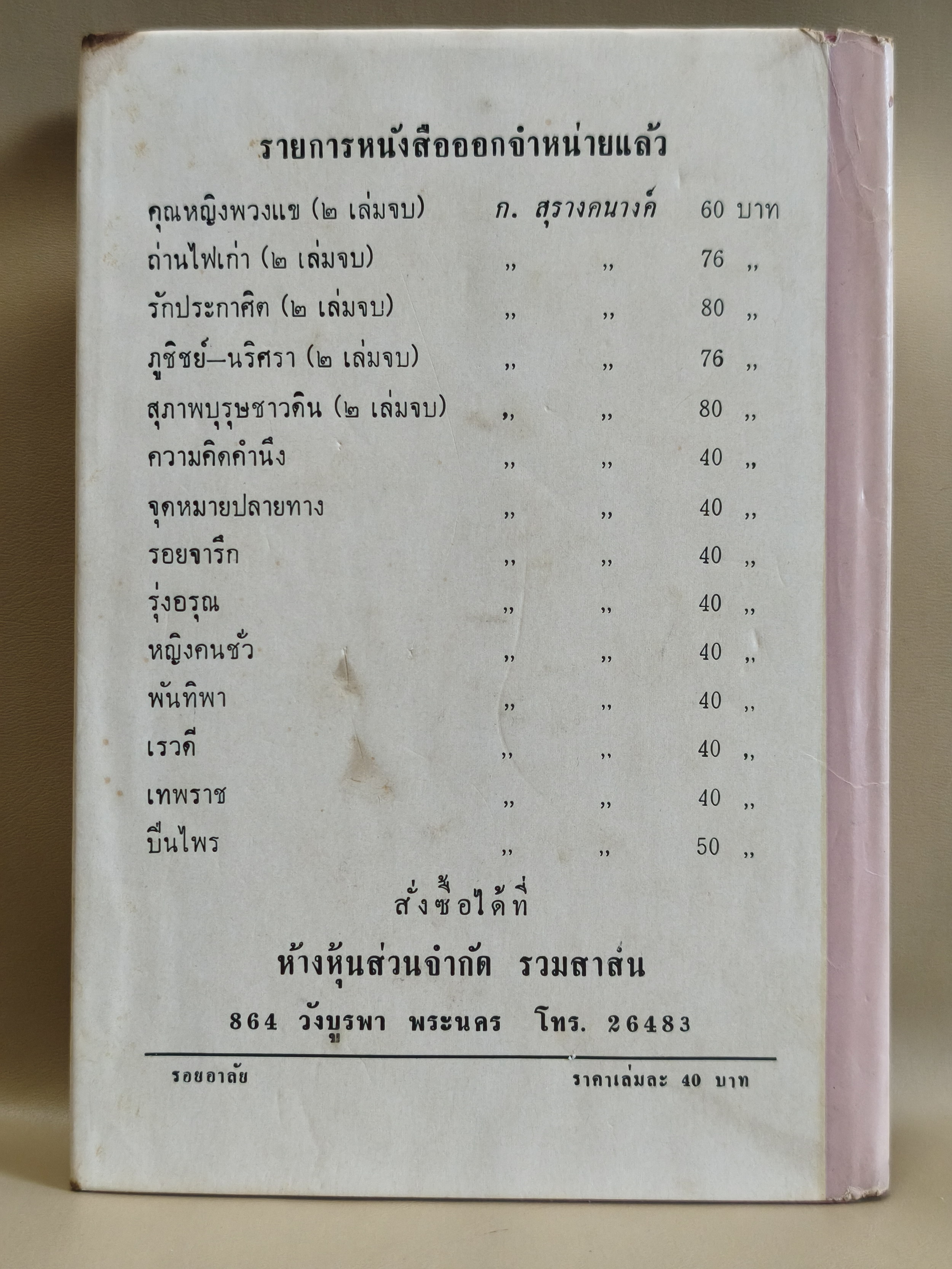 สภาพหนังสือ:ใบหุ้มปกมีรอยถลอกยับ ย่นตามขอบและมุมเล็กน้อยตามภาพ , ปกมีรอยกระแทกถลอกตามขอบและมุม , กระดาษเหลืองตามขอบ และ เป็นจ้ำเหลืองประปราย , สันหนังสือเหลือง และเป็นจุดเหลืองประปราย