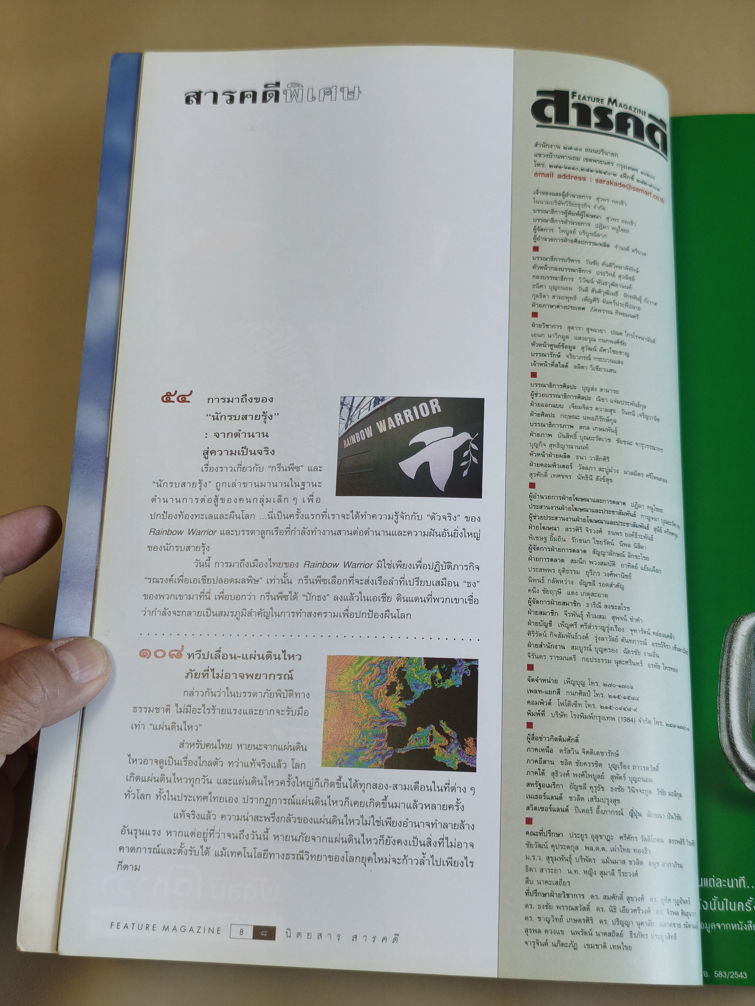 เมื่อกรีนพีซและเหล่านักรบสายรุ้งชักธงรบในเอเชีย , ทวีปเลื่อน-แผ่นดินไหว ภัยที่ไม่อาจพยากรณ์ , อันเนื่องด้วย ผี ของคนเพชรบุรี , กรุงเทพฯ ดำ-ขาว , คาร์ล มาร์กซ์